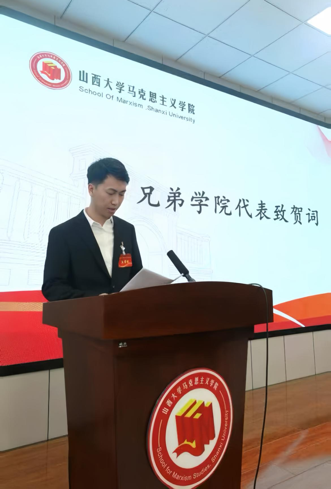 团委副书记许柯代表学院对第八届研究生会的成绩予以肯定,对成员们的辛勤付出表示感谢,并对新当选的主席团成员表示祝贺。他希望新一届研究生会成员要筑牢信仰之基,坚持以习近平新时代中国特色社会主义思想为指导,从青年视角出发,真正为学生办实事;要深耕学术沃土,深入学习AI应用融合模式,充分发挥马院特色优势,营造比学赶超的工作氛围;要密切联系学生实际,增强服务的针对性,以优良作风服务全院同学成长成才。