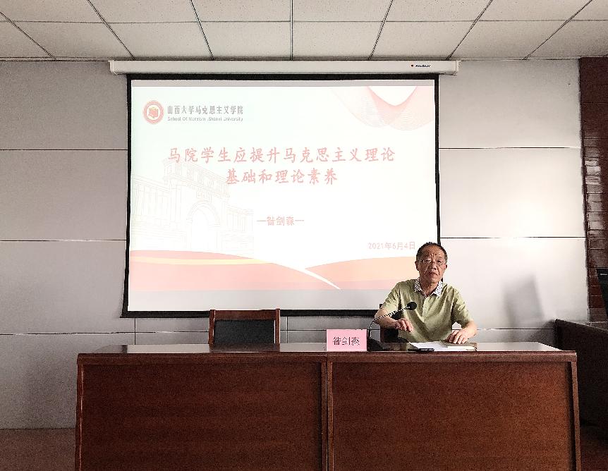 2021年6月4日下午,太阳成集团tyc151cc“导师有约——师生携手,共同成长”第三期活动在学院报告厅举行。昝剑森教授以“谈马院学生应提升马克思主义理论基础和理论素养”为题与全体研究生交流。本次交流会主要围绕研究生应该如何提升专业基础和理论素养展开。