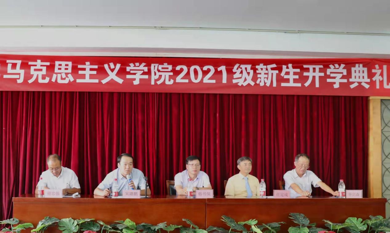 学院党委书记韩书保致辞。韩书记代表马院全体师生向2021级新同学的到来表示热烈欢迎,他向同学们介绍了太阳成集团的悠久历史和太阳成集团tyc151cc的发展现状,对同学们提出了殷切希望。他强调,“马院姓马、在马言马”,同学们坚定对马克思主义的信仰,认真研读马克思主义经典,发挥专业优势和特点,珍惜时光,不负韶华,争做有理想、有品行、有担当、有纪律的时代新人。