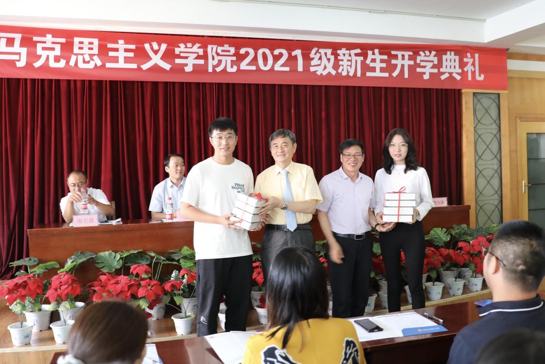 其间,为鼓励同学们阅读马克思主义经典,打下扎实的专业基础,韩书保书记和任定成院长代表学院为2021级新生赠送了《马克思恩格斯选集》。