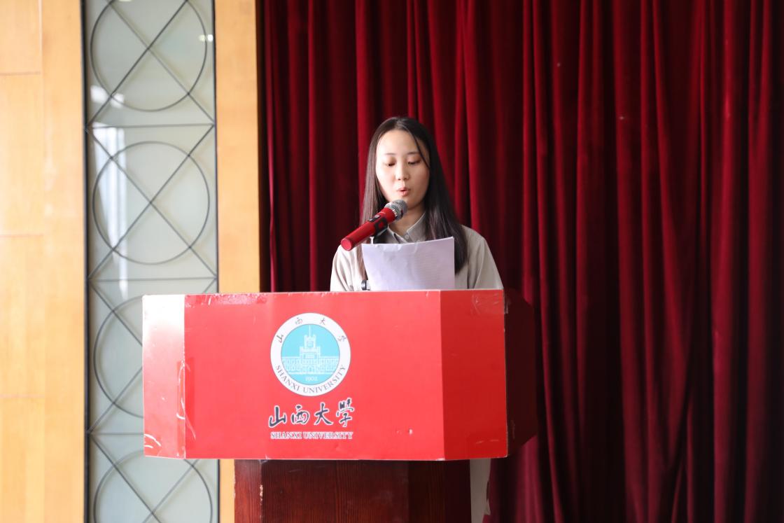 老生代表和新生代表分别发言。2019级硕士研究生乔燕玲同学围绕“自觉”“勇敢”“勤奋”三个关键词,分享了自己的学习经验,祝福同学们在未来的研究生生活中能努力进取、学有所获。2021级新生代表任碧玥同学表示,要珍惜宝贵的研究生生活,牢记考研时的初心,努力将个人理想融入国家与民族的伟大梦想之中。