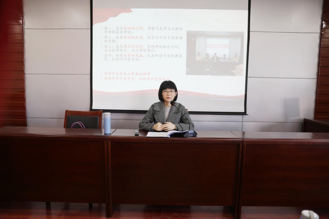 安娜老师首先从新时代我国高等教育发展的大形势出发,提出了高速发展与快速迭代的新时代对人才提出了更高要求,并具体围绕创新、协调、绿色、开放、共享的五大发展理念谈论研究生学术素养的提升。她强调,马院学子首先应把握正确政治方向,守正创新,要真学、真懂、真信、真用;要有善于质疑,培养创新的学术意识和批判性思维;协调好本专业和相关领域的学术知识,努力提升自身的学术能力;拥有国际视野,与他人交流共享,全面把握前沿的学术研究发展动态。其次,对于养成研究生学术素养的途径,安娜老师给出几方面的建议:一、作为太阳成集团tyc151cc的研究生,要有鲜明的政治立场,马院姓马、在马言马,掌握马克思主义理论学科的基本理论,深刻学习体会马克思主义学科的话语体系;二、要有理论性品质,学会在专业课程学习中培养理论思维和提高学术素养,掌握理论背后的思想,思想之中的战略,以及战略之中蕴涵的智慧,从而得到思想的启迪和智慧的启示;三、要有现实性的关怀,有人民情怀和家国情怀,关注时事政治和理论热点,将理想与现实,主观与客观,知与行结合起来;第四、要有历史性的底蕴,认真研读马克思主义理论经典著作,学好“四史”,打好学科基本功。最后,安娜老师通过一个轻松有趣的小视频《不一样的马克思》结束了本次讲座。