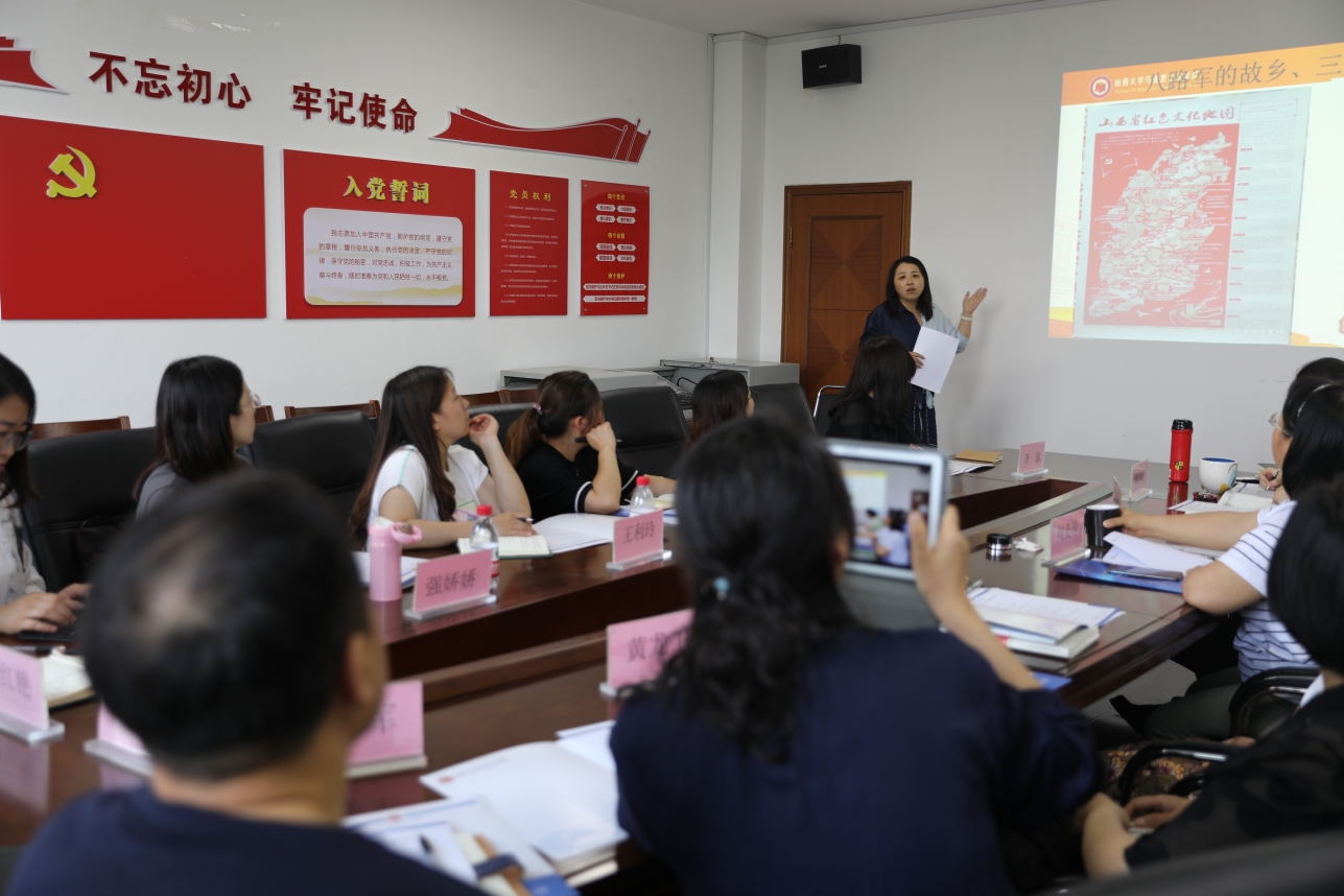 在副院长昝剑森教授的指导下,侯红霞副教授介绍了开展本次集体备课的目标及其意义。逯慧副教授作了“晋绥法律制度融入坚持中国特色社会主义法治道路研究”课题研究成果的汇报。段红艳副教授以“党史融入‘基础’课中国革命道德教育”为题作了备课分享。吕梁学院“基础”教研室陈爱爱、董贺副教授分别进行了交流发言。